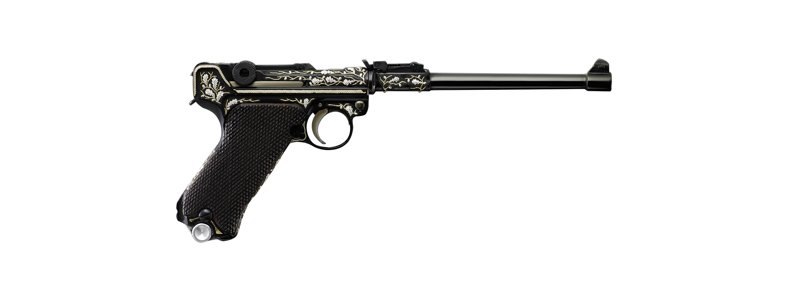 • The Lange Pistole 08 (LP 08), known as the "Artillery Luger," was adopted by the German military in 1913, featuring a long 200 mm barrel, an 8-position tangent rear sight, and an attachable shoulder stock intended for artillery units and later used by stormtroopers, aviators, and infantry during World War I. Although production ended in 1918, remaining stocks were reissued during World War II, and some versions were exported and even commercially produced into the 1930s, including contracts for Iran and use by Thai police forces.