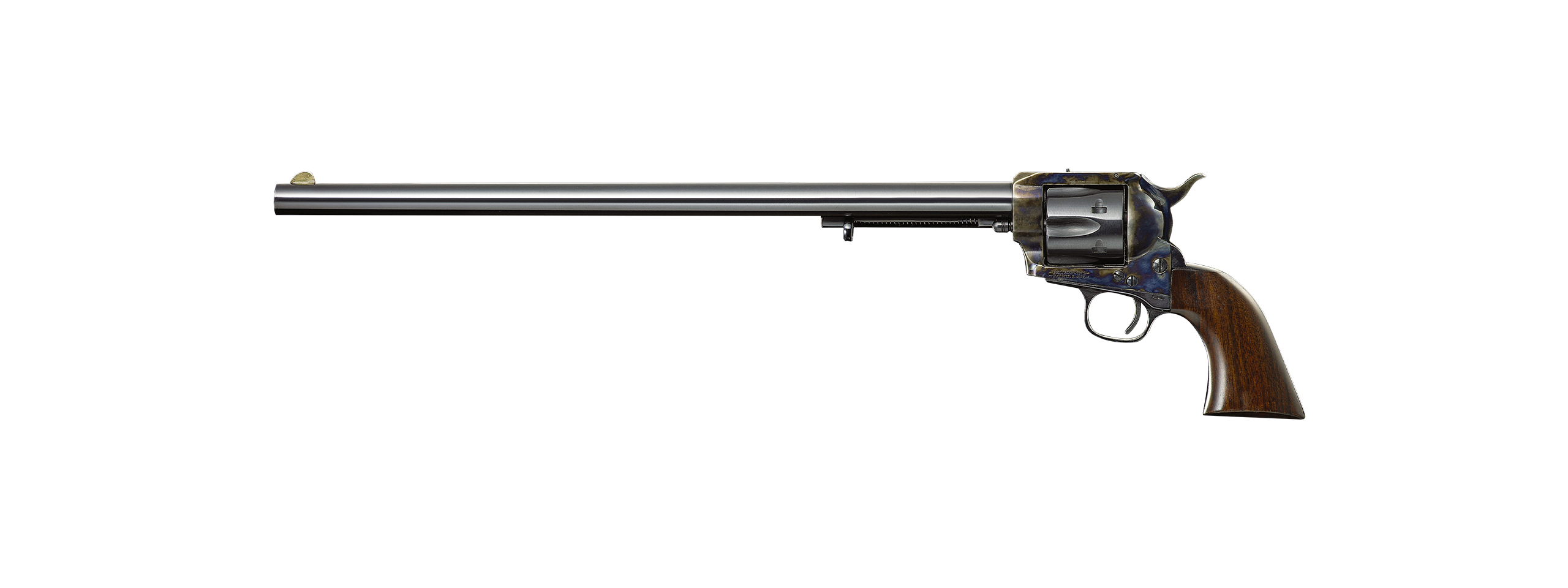 Buntline revolvers were named after Ned Buntline, a nickname for Edward Judson, a well-known American writer in the 19th century. The 1873 Buntline Target is an Italian 6-shot single-action revolver chambered for the .357 Magnum or the .45 Colt cartridges, manufactured by A. Uberti, Srl. The revolver has an 18-inch barrel with no muzzle brake or ports.